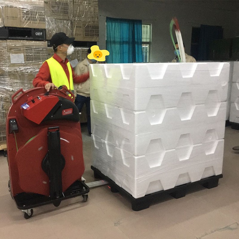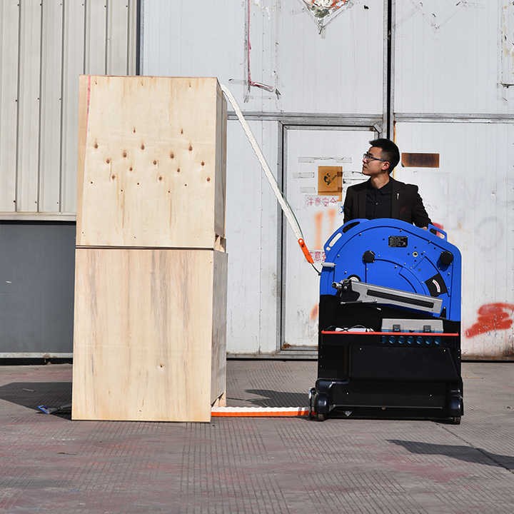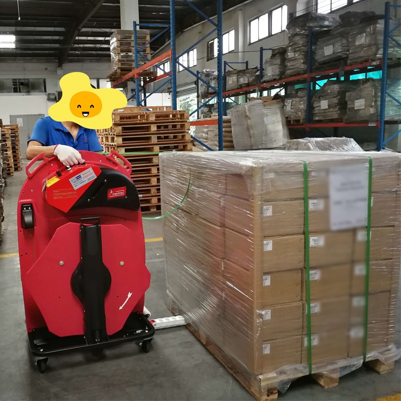 The electric chain threading strap strapping machine is a popular product in the packaging industry. It allows you to complete the strapping work elegantly, without bending over, and one person can operate it from one side. Just bring the strapping machine close to the side of the pallet, and then the chain gun will pull the strap under the pallet and then over the pallet, and then the sealing head will tighten the strap and weld it firmly. Mobile pallet threading strapping machine is widely used for strapping heavy and tall products, pallets or high pallets, which can reduce labor and production costs.