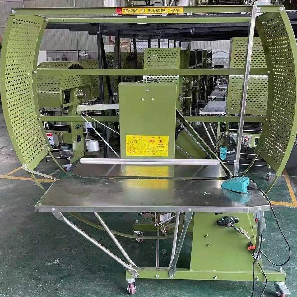 The working principle of the PE Rope Strapping Machine is to place the items on the equipment, press the start button, the motor starts, drives the reducer and the transmission shaft to start rotating, so that the strapping tape reel also starts to rotate, and the strapping tape is pulled out from the tape reel , and are tensioned by the bearings on the frame, and the items are finally bundled.The main advantages of the PE Rope Binding Machine are simple structure, easy operation, easy maintenance, convenient use, low price, etc.