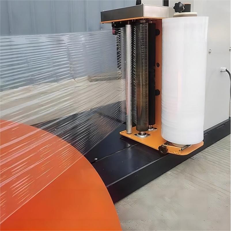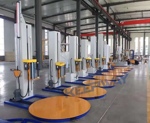 The pallet wrapping machine /pallet wrapper / stretch film packing machine uses LLDPE stretch film to wrap bulk pallet goods. It is widely used in glass products, hardware tools, electronic appliances, paper making, ceramics, chemicals, food, beverages, building materials and other industries. This equipment can improve logistics efficiency and reduce the loss during transportation.It has the advantages of dust-proof, moisture-proof, and reduced packaging cost.