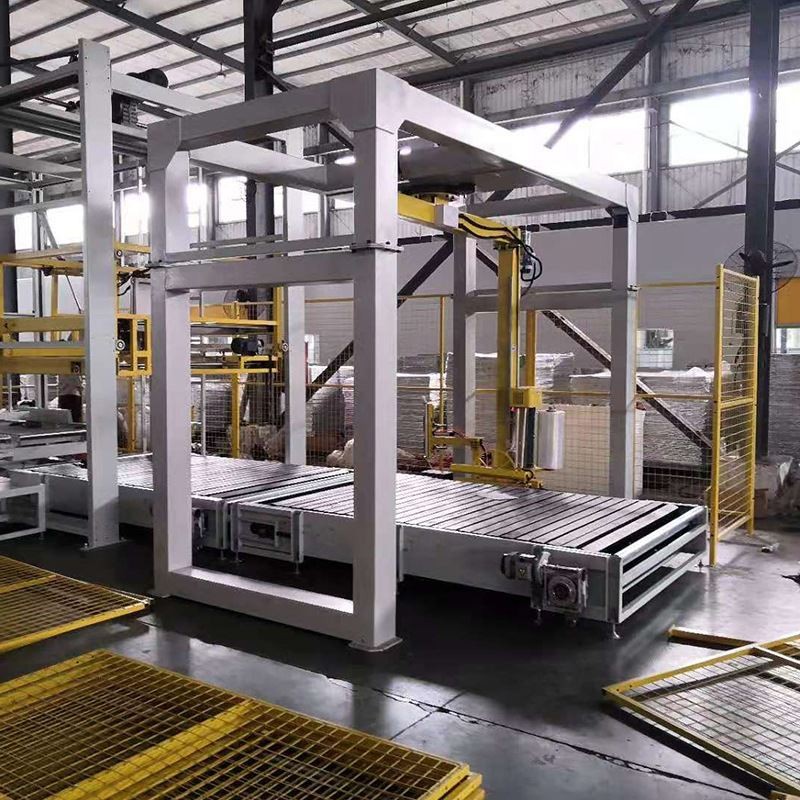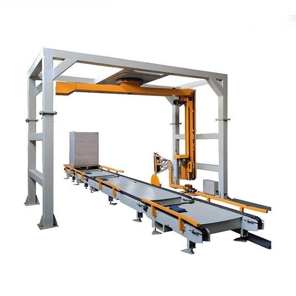 The design of the conveyor line can be adjusted according to needs: roller, belt or chain conveyor lines can be prepared. Cargo (pallet) lifting device, film automatic cutting device, winding film film breaking warning device. Can increase the winding height, increase the winding size, top covering film system, top pressing device.