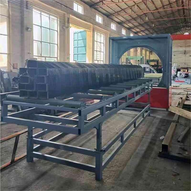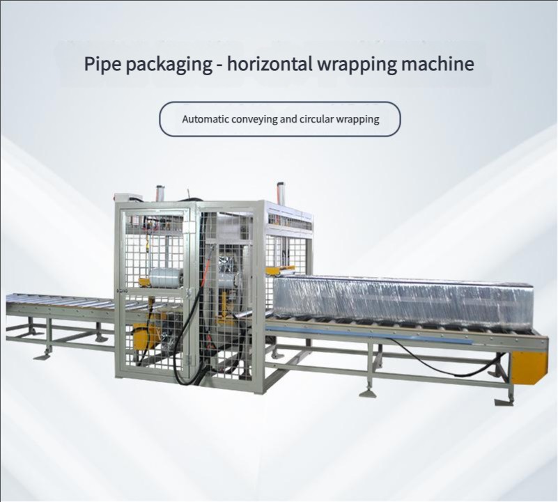 The horizontal wrapping machine is suitable for industries such as building materials, profiles, pipes, etc., and cooperates with automatic conveying equipment to achieve high-speed, fully automatic and unmanned film winding packaging of products. It can effectively maintain the stability of goods, facilitate transportation and storage, and reduce damage to goods during transportation. Damage to goods caused by factors such as pollution, rain, etc. can save packaging time and reduce packaging costs.